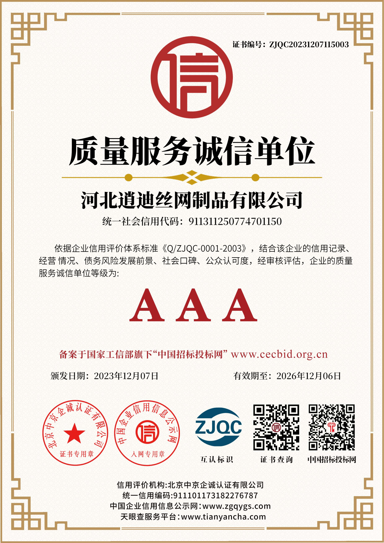 河北逍迪絲網制品有限公司誠信天下,誠信是我們公司一個原則問題不可撼動的,以心中有誠信的思想結交五湖四海的朋友,能達到雙贏是最好的,我們堅信朋友多了路好走,我們公司都是老朋友多,我們一直是這樣做的。河北逍迪絲網制品有限公司成立于2013年注冊資本壹仟伍佰萬整,主要生產沖孔網,鋼格板,金屬防蟲網,如實的實體廠家,是一家-研發-銷售-生產-安裝-售后一條龍公司,2019年通過了ISO 9001認證管理體系符合GB/T 19001-2016/ISO 9001:2015標準,同時通過了SGS認證,擁有商標版權2品牌,擁有一個著作版權,河北逍迪絲網制品有限公司位于中國有名的(絲網之鄉)安平縣,于天津,北京,雄安,石家莊相鄰,交通非常發達,出口可以選擇天津港口非常近每天都有接貨送貨往返車輛,空運可以選擇石家莊正定機場,附近也有鐵路運輸,當地還有兩個生態物流園區發往全國各地,我們沖孔網工廠生產設備有:普通沖壓機,高速沖壓機,自主研發小微孔沖壓機,龍門沖,磚塔沖孔,重型沖孔機,萬瓦級別激光切割機,3000W激光切割機,焊接設備,折彎機,校平機,剪板機,精密校平機,(對板面平整度要求苛刻的客戶群體0.5-0.2誤差)我們公司銷售市場沒有局限性國內國外都供應,擁有出口權...
